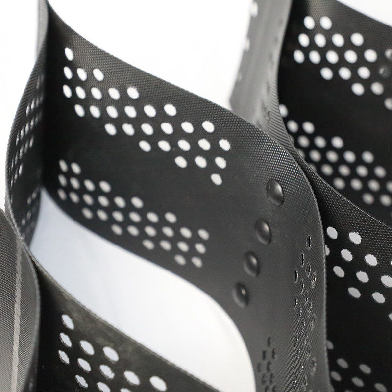 nhựa địa kỹ thuậtđược thực hiện bằng cách hàn các tấm nhựa HDPE được tăng cường bằng sóng siêu âm công suất cao.Chúng tôi có thể sản xuất các bề mặt như mịn, kết cấu hoặc đục lỗ.Nó là một cấu trúc của sản phẩm ba chiều.