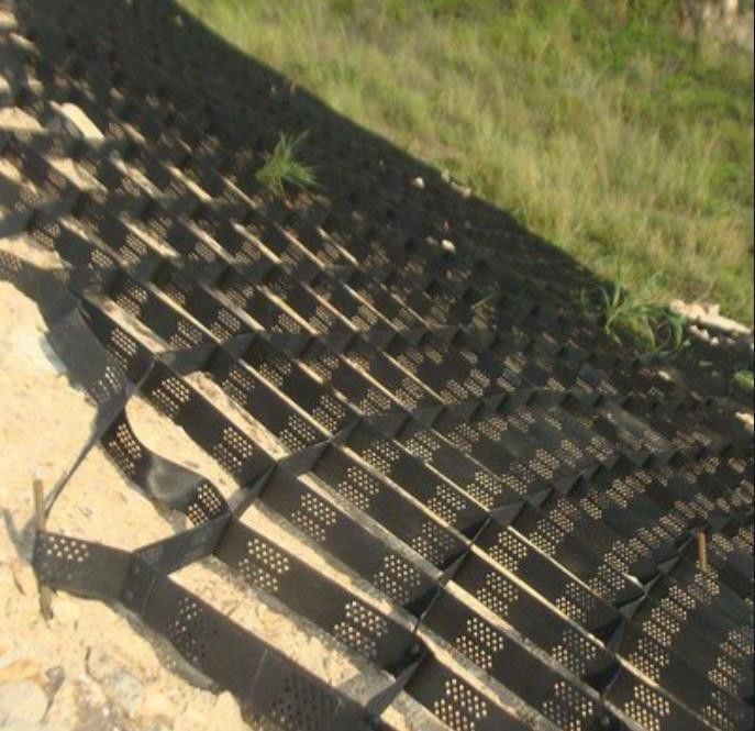Geocell là một thiết bị ba chiều nhẹ và linh hoạt,Các tấm mở rộng được làm từ các dải polyethylen mật độ cao (HDPE) được liên kết qua siêu âm để tạo thành một cấu hình cực kỳ mạnh.